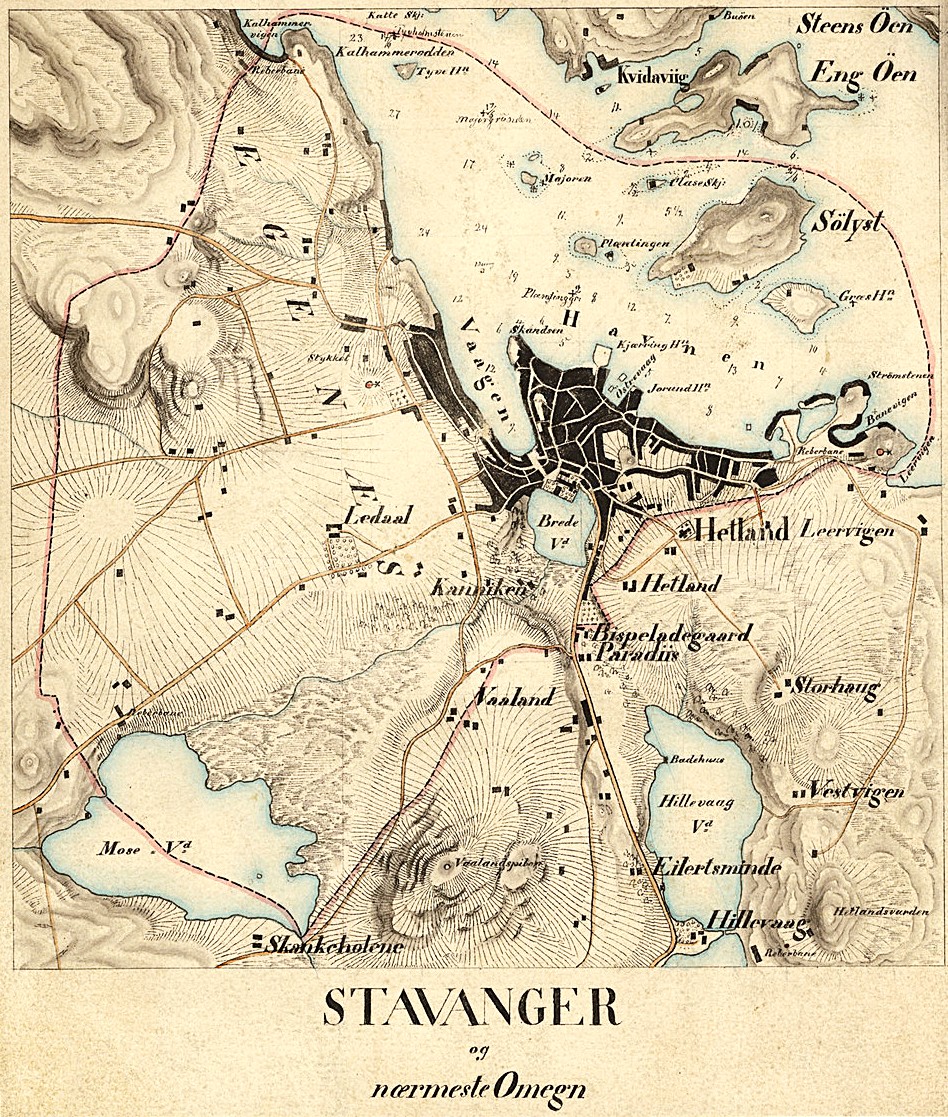 Kart over Stavanger og omegn fra 1855
